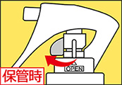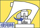 - ①レバー下のストッパーをOPENに合わせてください。
